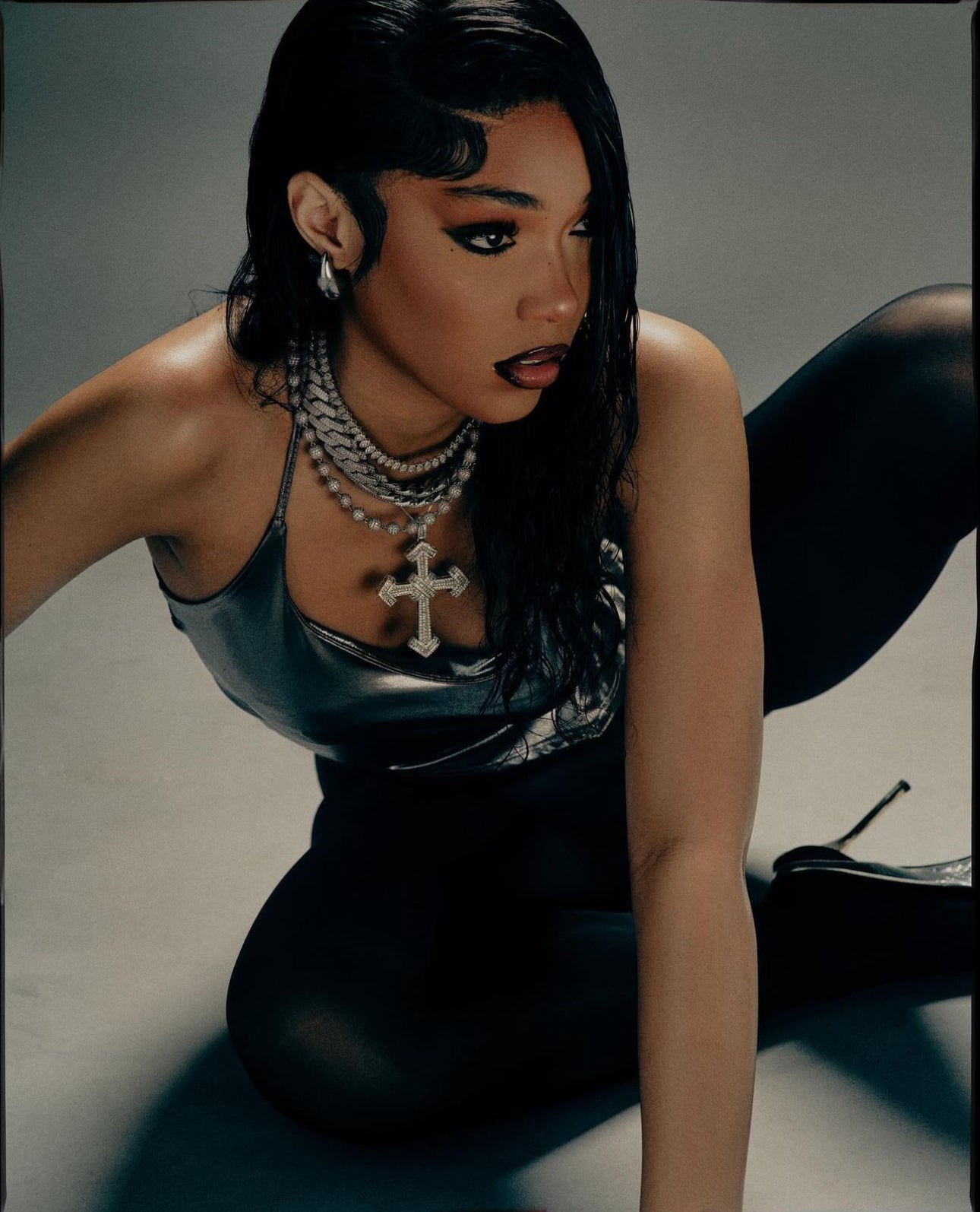 Lay Banks wears Shay Jewels Co Chrome Metallic Collection for her XXL freshman class performance. Styled by Devon Milan, Lay Banks wears tear drop bracelets, chunky tear...